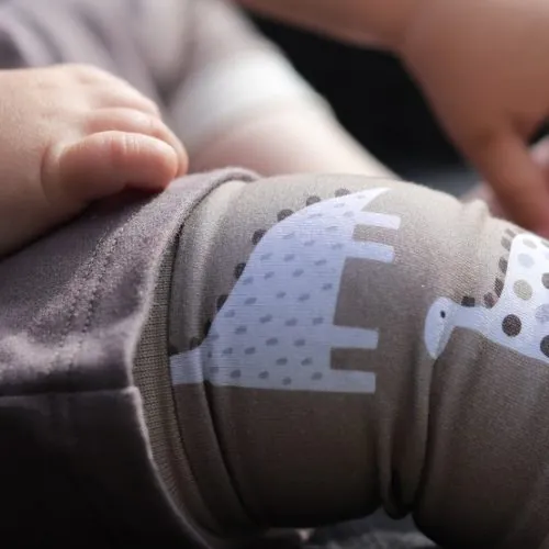 Saját gyermekeim tapasztalatából alkottuk meg ezt a termékünket, amellyel megóvhatjuk babánk térdeit a sebektől. Nyáron, amikor kisszoknyás vagy rövidnacis szezon van, húzd fel babád térdeire ezt az elasztikus pamut jersey térdvédőt. Az alul-felül lévő passzénak köszönhetően könnyű a térdvédő felvétele. Fontos megemlítenem, hogy elsősorban nem kúszás-mászásra terveztük a térdvédőt, de természetesen arra is használható. Viszont ebben az esetben megeshet, hogy elmozdul a helyéről. Ha pár helyreigazítás nem okoz neked gondot, akkor használjátok mászáskor is, akár nadrágra is ráhúzhatjátok.