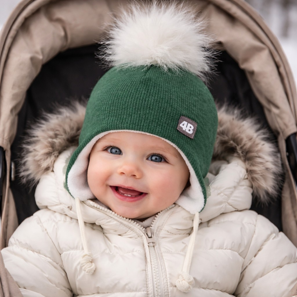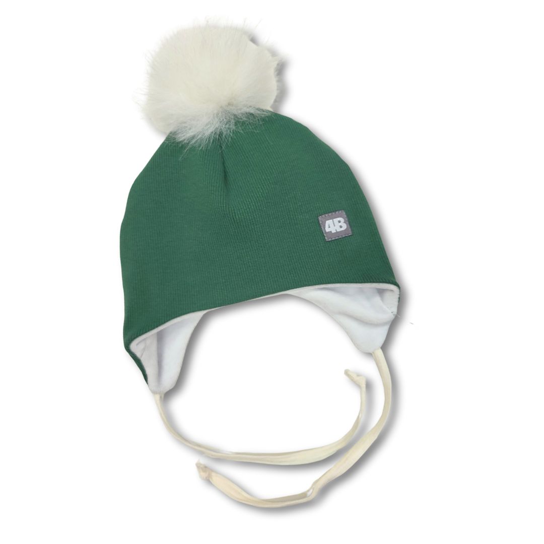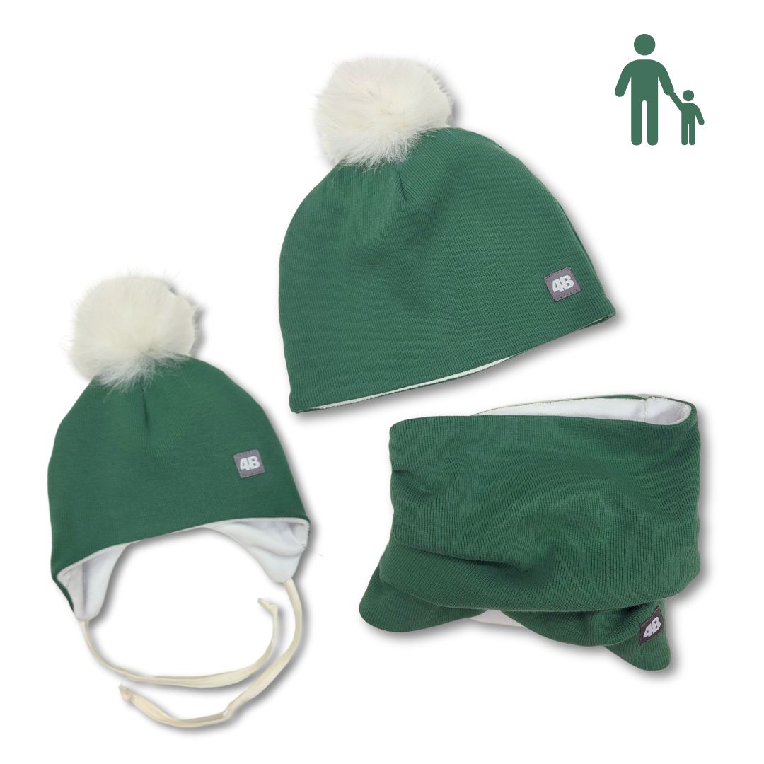 4BABIES Anya-Baba téli sapka & sál szett, bordás zöld, fehér pomponnal