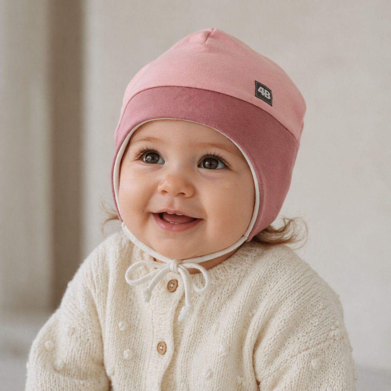A lágy kötővel kényelmesen tudod rögzíteni a sapit kisbabád fején, így az nem fog elmozdulni, ahogy a babakocsiban forgolódik.