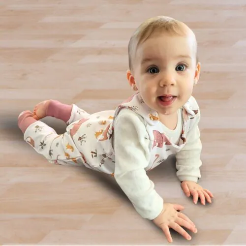 A rugdalózó a legjobb ruhadarab a pici csöppségek számára, védi a hátukat, de mellette könnyű benne mozogni. Vállnál lévő patenttal gyorsan a babára adható, illetve levehető.
