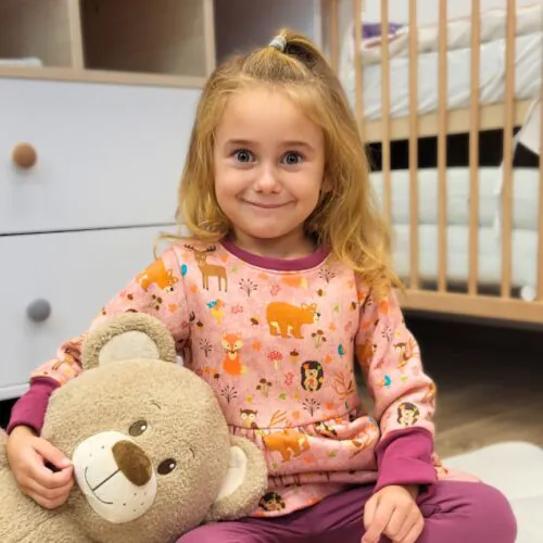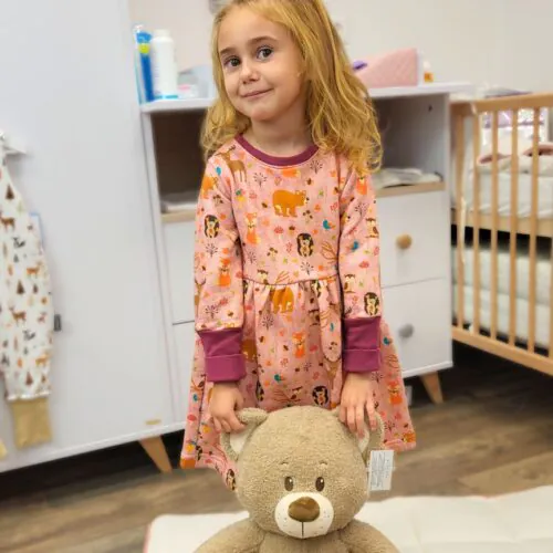 Bájos fazonja, kényelmes pamut anyaga és tündéri mintája oly annyira elragadó, hogy kislányod majd nem is akar mást felvenni.