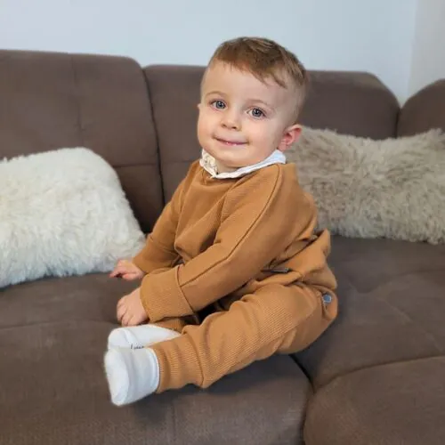 Ez a nadrág együtt nő a babával, így hosszabb ideig használható. Modern, bőrbarát, légáteresztő pamut anyagból, egyedi designnal készült, amely egyszerre praktikus és stílusos.