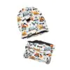 A sapka és a csősál kétrétegű és KIFORDÍTVA is hordható: míg egyik oldala mintás, a másik egyszínű, a szélén vékony csíkban kisejlik a minta. Ezzel nagy változatosságot hozhatsz be gyerkőcöd ruhatárába!