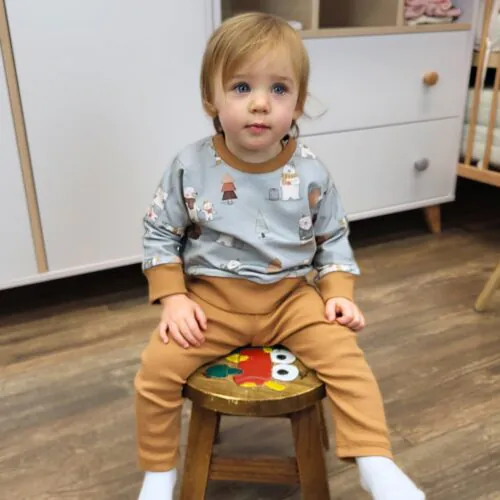Anyaga természetes, bőrbarát és jól szellőzik, így a baba garantáltan komfortosan érzi magát ebben a pulóverben.