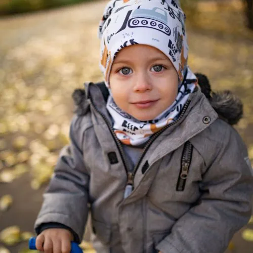 A sapka és a csősál kétrétegű és KIFORDÍTVA is hordható: míg egyik oldala mintás, a másik egyszínű, a szélén vékony csíkban kisejlik a minta. Ezzel nagy változatosságot hozhatsz be gyerkőcöd ruhatárába!