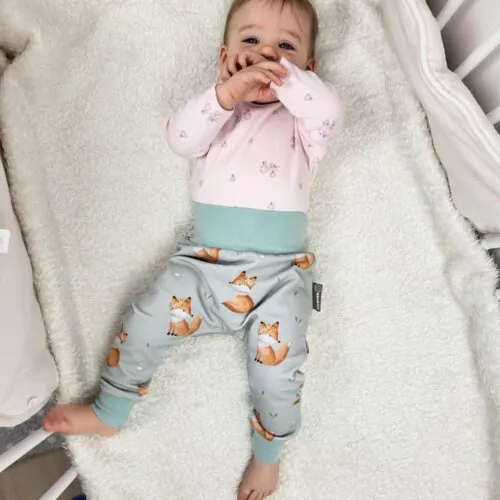 Ez a nadrág együtt nő a babával, így hosszabb ideig használható. Modern, bőrbarát, légáteresztő pamut anyagból, egyedi designnal készült, amely egyszerre praktikus és stílusos.