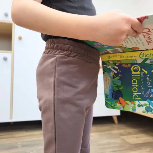 Pamut nadrágunkat vagány térdfoltokkal varrjuk, így mehet a kúszás-mászás, földön csúszás. Nincsen többé kiszakadt, foltozandó naci. No, és a ráadás, hogy ezt a szabadidő nadrágot hosszú passzéval készítjük, így két méretet is felölel. Hordjátok először feltűrve, aztán lehajtva.