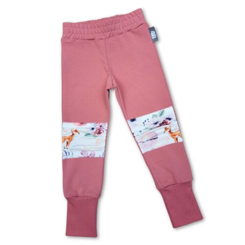 4BABIES "Rosszcsont" térdfoltos szabadidő nadrág, korall & Tündérkert