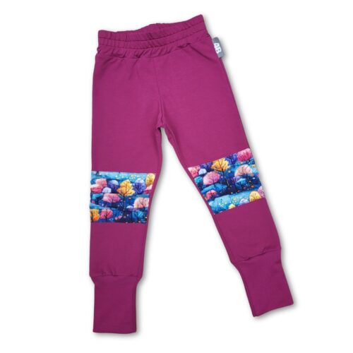4BABIES "Rosszcsont" térdfoltos szabadidő nadrág, amarant & "színes erdő"