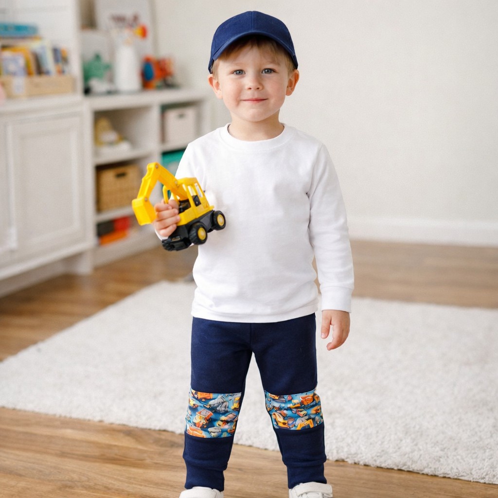 4BABIES “Rosszcsont” térdfoltos szabadidő nadrág, sötétkék & Bányagépek