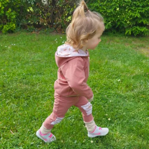Pamut nadrágunkat vagány térdfoltokkal varrjuk, így mehet a kúszás-mászás, földön csúszás. Nincsen többé kiszakadt, foltozandó naci. No, és a ráadás, hogy ezt a szabadidő nadrágot hosszú passzéval készítjük, így két méretet is felölel. Hordjátok először feltűrve, aztán lehajtva.