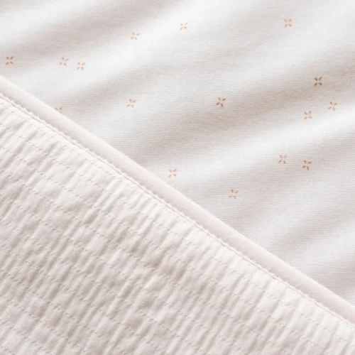 A steppelt jersey takaró könnyű, mint a felhő, kényelmes és nagyon meleg. A pamut jersey alkalmas a baba érzékeny bőrére. A puha párnázott foltvarrás nagyon kényelmessé teszi.