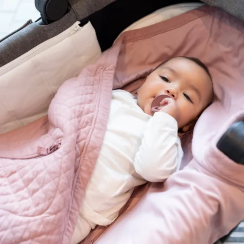 A puha és nedvszívó frottír belső tökéletesen illeszkedik a középszezonhoz és a nyáron minden babakocsi- és autós utazáshoz születéstől kezdve.