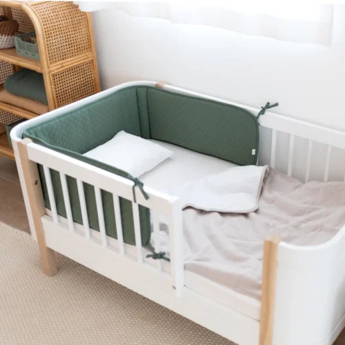 Puha és megnyugtató, a rácsvédő hozzájárul a kényelemhez és a nyugalomhoz, mivel megakadályozza, hogy a baba nekiütődjön vagy beszoruljon a rácsokba.