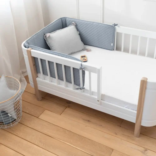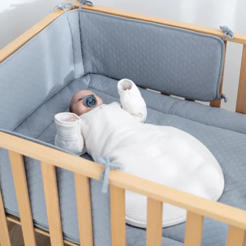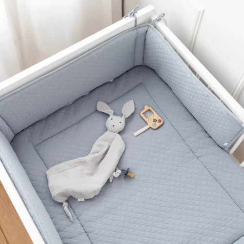 Puha és megnyugtató, a rácsvédő hozzájárul a kényelemhez és a nyugalomhoz, mivel megakadályozza, hogy a baba nekiütődjön vagy beszoruljon a rácsokba.