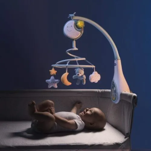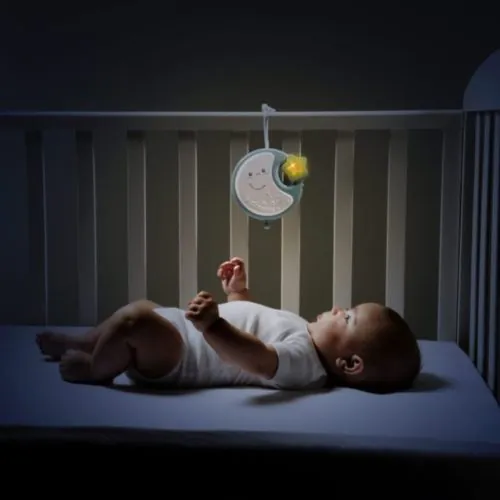 Ez a kellemes melódiát játszó Chicco zenélő forgó körhinta akasztós játékokkal kíséri gyermekét a békés álomba.Az első, kifejezetten Next2Me kiságyakra szerelhető körhinta a legtöbb fa babaágyhoz is illeszkedik. 20 perc klasszikus zene (Chopin, Schumann, Offenbach) és nyugtató fehér zaj funkcióval is rendelkezik – a szívverés hangjának utánzására tervezték, amely az első hang, amit a baba az anyja hasában hall.