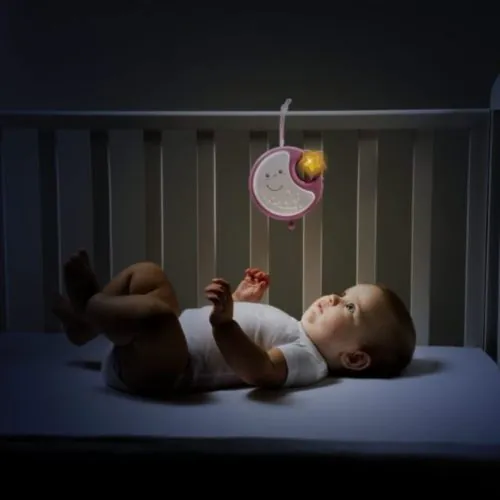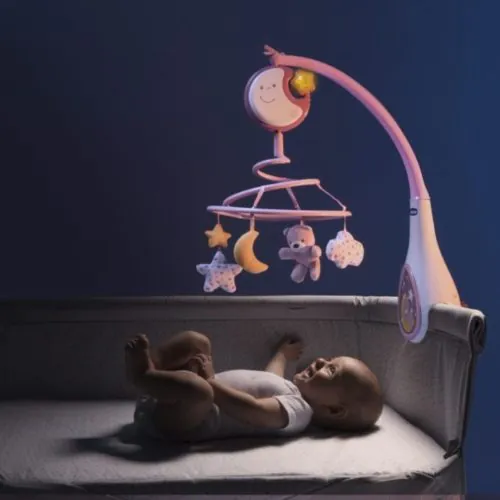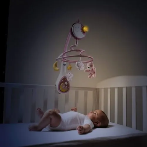 Ez a kellemes melódiát játszó Chicco zenélő forgó körhinta akasztós játékokkal kíséri gyermekét a békés álomba.Az első, kifejezetten Next2Me kiságyakra szerelhető körhinta a legtöbb fa babaágyhoz is illeszkedik. 20 perc klasszikus zene (Chopin, Schumann, Offenbach) és nyugtató fehér zaj funkcióval is rendelkezik – a szívverés hangjának utánzására tervezték, amely az első hang, amit a baba az anyja hasában hall.