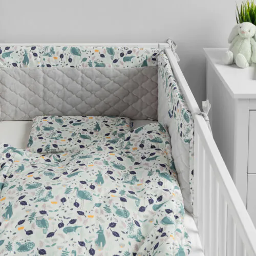 A készlet kiságyhoz készült, de a mózeskosárba is elfér.