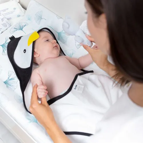 A Sensillo babatörölközővel a fürdés tiszta öröm a babáknak és szüleiknek egyaránt. 100% frottír pamut anyagból készült, így nedvszívó és gyorsan szárad. A szülők is nagyra értékelik az óvatosságot, és ez a törölköző nem irritálja a bőrt. A kapucni vicces víziállat száj díszíti, színenként más és más.