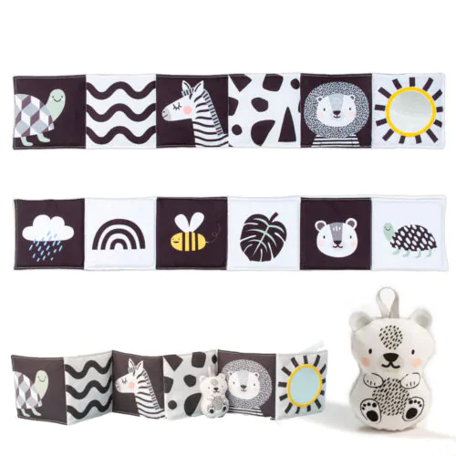 - Fejlesztő hatások: A könyvvel való játék fejleszti a gyermek térérzékelését és segíti az ok-okozati viszonyok megértését. A színes minták pedig a vizuális észlelés fejlődését támogatják.