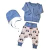 Ezzel az exkluzív hazavivős szettel garantáltan szenzációs lesz a picid! A puha rugdalózó, a kötött sapka és az elegáns kiskabát mind prémium anyagokból készült, hogy a kisbabád kényelmesen és stílusosan érkezzen meg az otthonotokba. Készüljetek az első csodás fotókra – ebben a szettben mindenki odáig lesz érte!