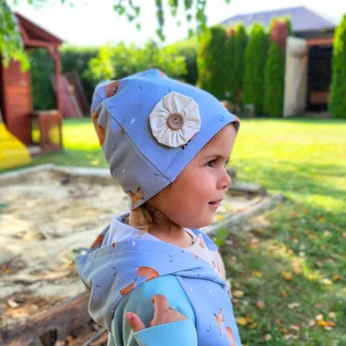 A sapka kétrétegű és KIFORDÍTVA is hordható: míg egyik oldala mintás, a másik egyszínű, a szélén vékony csíkban kisejlik a minta. Ezzel nagy változatosságot hozhatsz be gyerkőcöd ruhatárába!