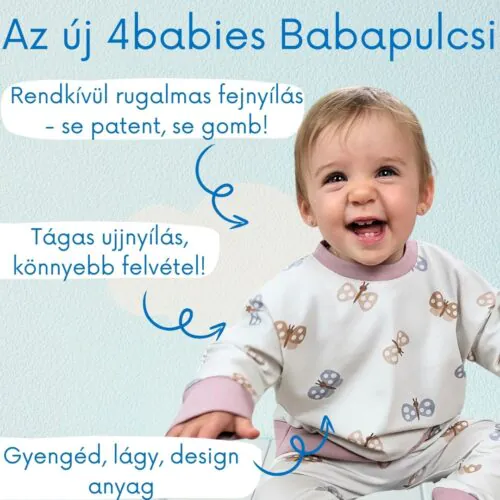Design és tervezés: A 4babies ruhák különlegessége abban rejlik, hogy Elek Barbara, ötgyermekes édesanya minden tapasztalatát felhasználva magyar szakemberekkel készítette el a tökéletes fazonokat. Így azok nem csak kényelmesek, hanem praktikusak is.