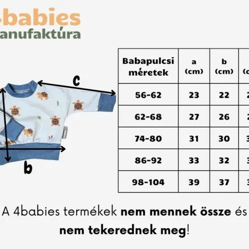 Mérettartás: A 4babies termékek nem mennek össze és nem tekerednek meg a sokadik mosásra sem.*