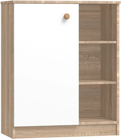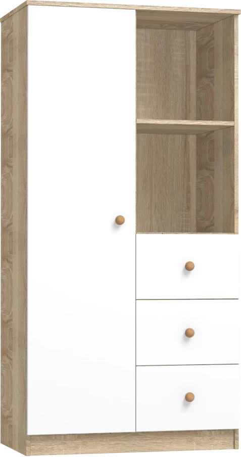 Sokoldalú nagyszekrény különböző tárolókkal. Méretét tekintve ideális kis- és nagyszobákba is egyaránt. Ajtó, fiókok, és nyitott polc is rendelkezésre állnak a tárolásra, így mindennek meg lesz a helye. Kiegészítőként pedig még plusz polcokat is lehet hozzá rendelni.