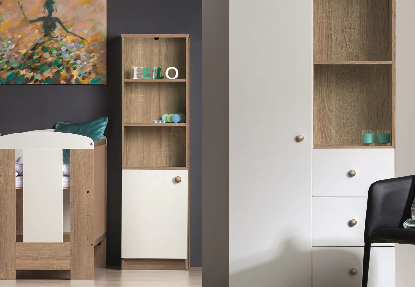 Ha a komódra ráhelyezzük a toldalékot, a komód mögötti rész kihasználatlan marad. Erre kínál tökéletes megoldást a tárolópolc, mely szinte minden bútorcsaládunknál elérhető. Csak el kell helyezni a komód mögé, akár mind a két oldalra, és máris egy kompakt pelenkázó sarokká változik, ahol minden szükséges dolog kéznél lesz, amire szükség van.